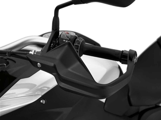 The hand protectors, made of shatter-proof and UV-resistant plastic, also protect the operating elements against branches and stone chips off-road while riding off-road.